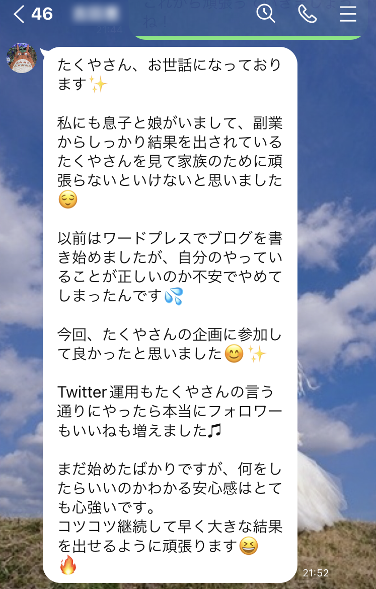 落ち着いた場所で丁寧にこの募集レターを読み進めて頂ければ、あなたの3ヶ月後は確実に変化し、ブログを使って結果を出すことができるでしょう・・・。